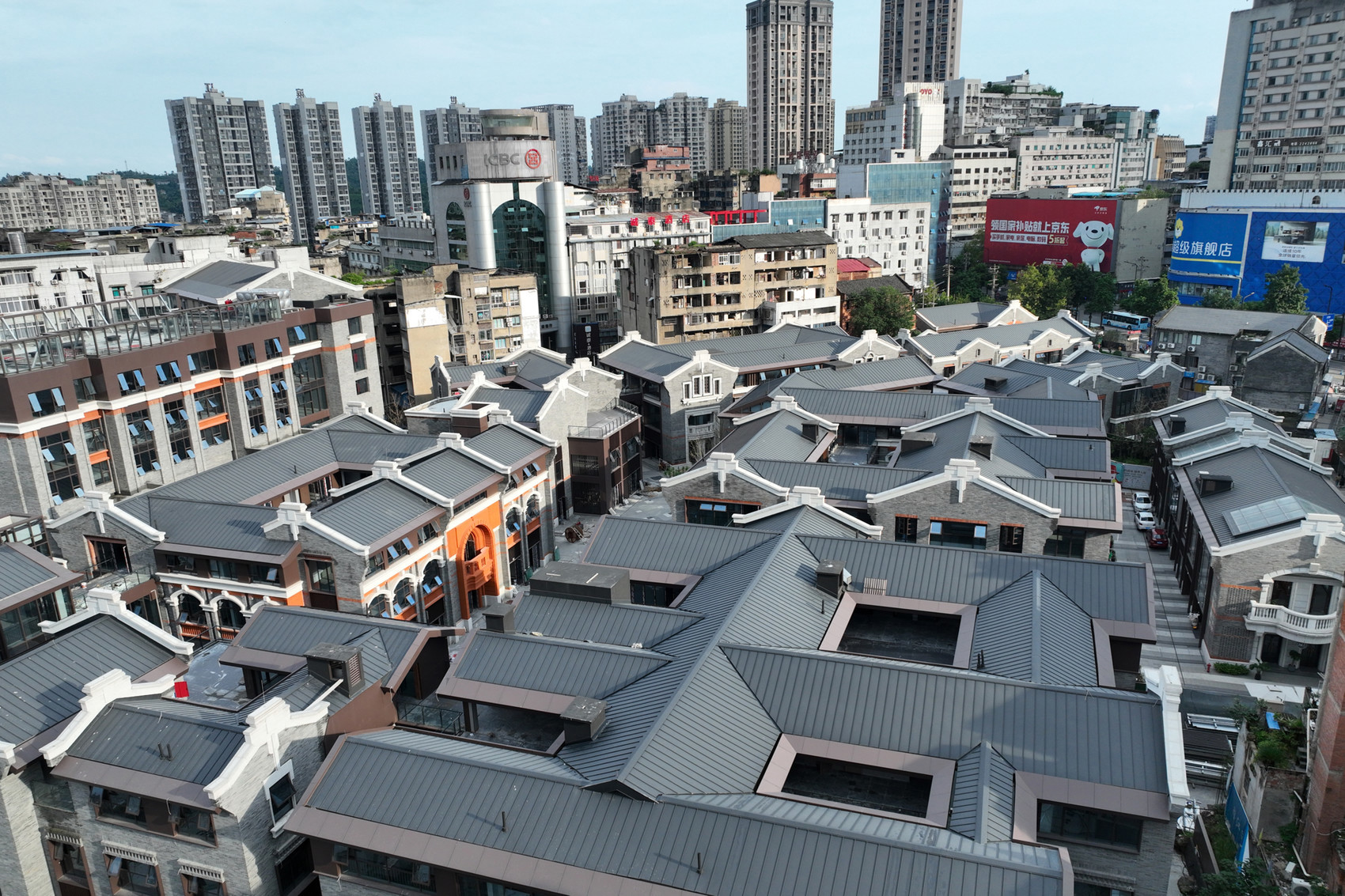 青砖灰瓦间的民国风小楼与玻璃幕墙相映,别具情调的咖啡店里客人们悠闲地喝着聊着,内江市市中区“四方块”绿色铁皮打围内外项目建设的收尾工作和周边街道的翻新工作同步进行着。