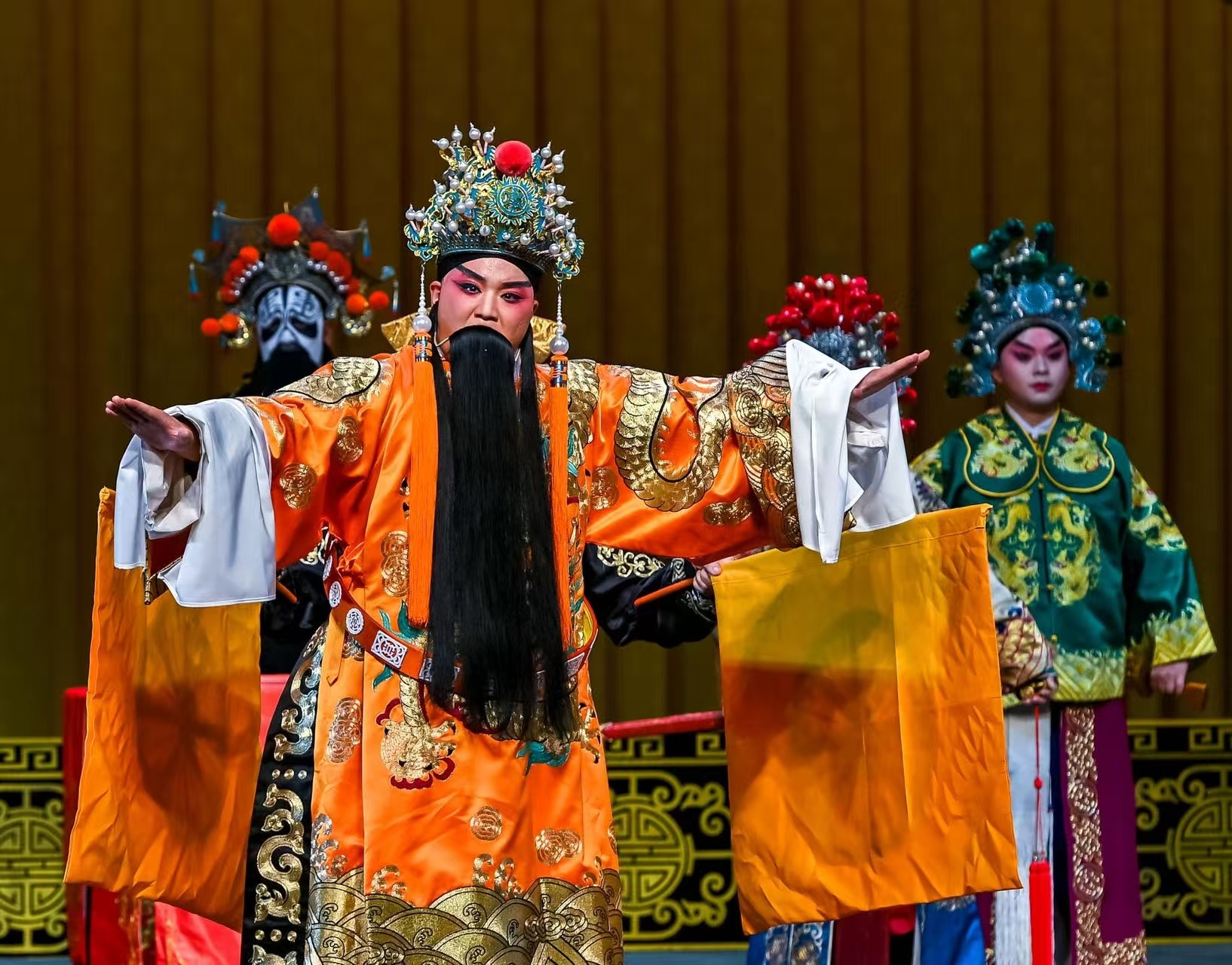 12月14日,威远县川剧团又开始热闹了起来。“莲花宝帐把令传,大小儿郎听详端……”当天上午10点,剧团排练厅,团长龙杨正对着镜子练习,灯光下的影子一动一静之间,房间内回响起高亢又颇具韵味的唱词。