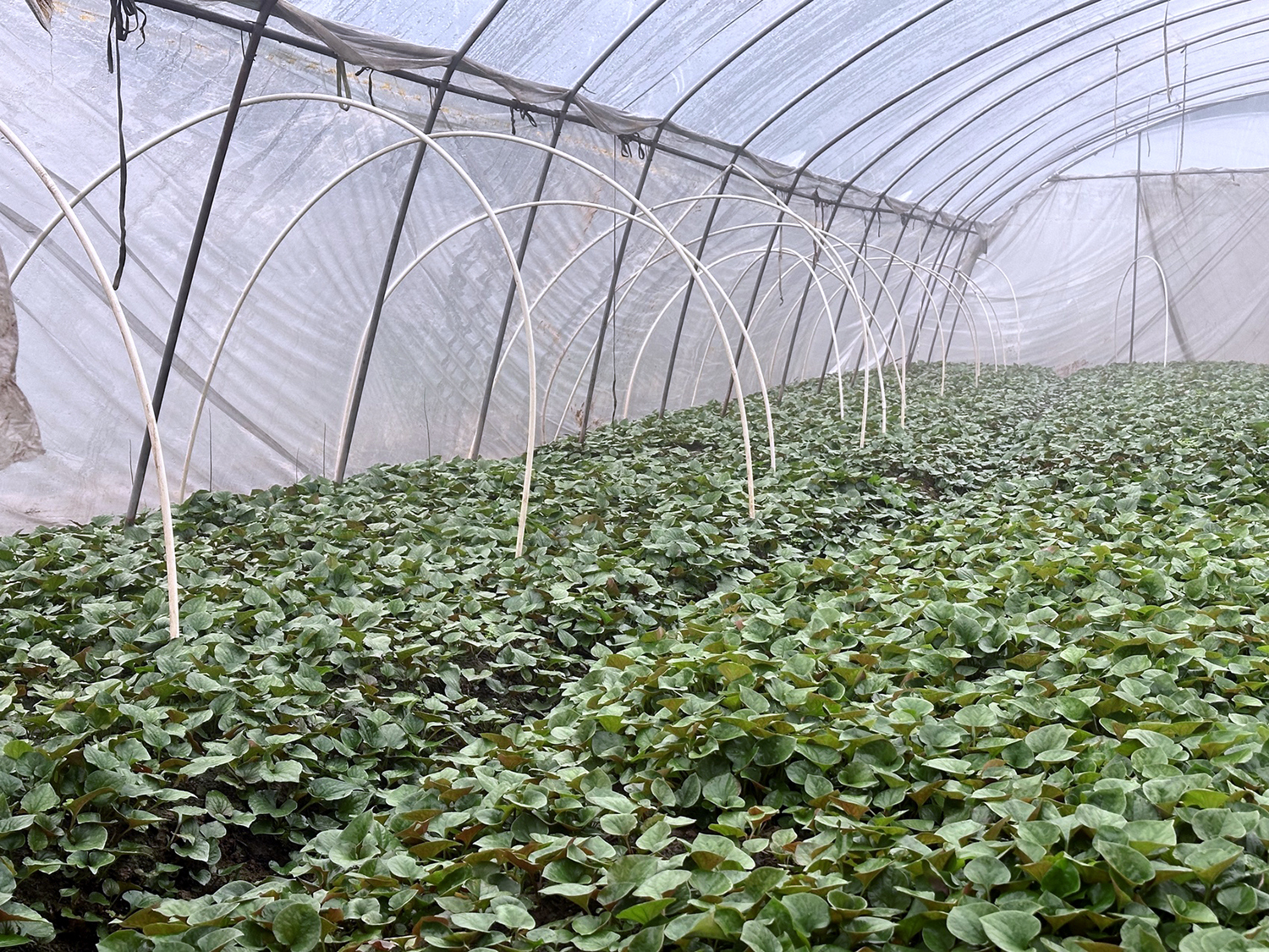 “看!这个是我这两年新试验出来的品种,味道香得很,而且叶子红得也好看!”近日,在内江市威远县向义镇柏林村种植大户胡贵明小心翼翼地掀开大棚的一角,向记者介绍着他不同品种的折耳根。柏林村支部书记陈廷佑在一旁打趣地谈道:“这些折耳根都是老胡的宝贝,平时谁想来参观他都不见得给人看。”