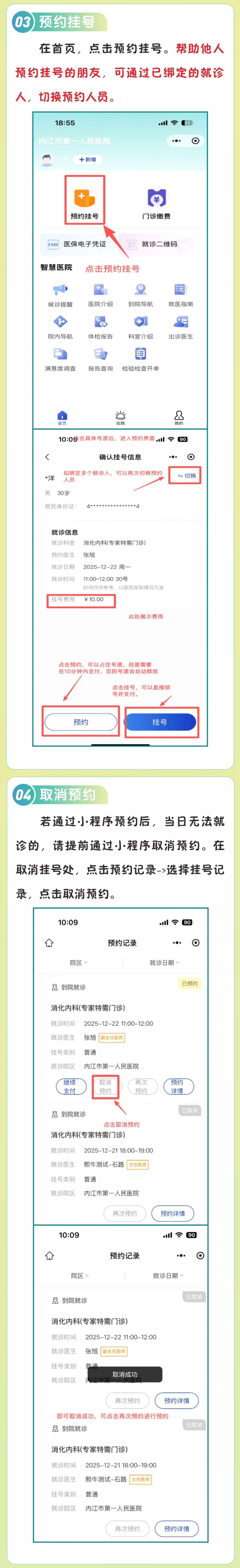 12月26日起,内江市第一人民医院对线上便民服务平台进行升级换代,网上预约挂号迎来新调整,旨在进一步优化患者就医体验、提升服务效率。