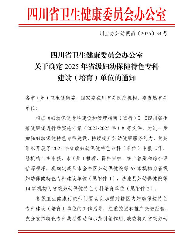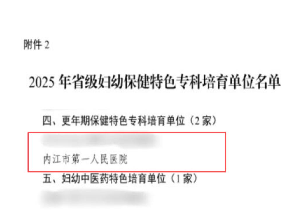 近日,四川省卫生健康委员会正式公布省级更年期保健特色专科培育单位名单,内江市第一人民医院凭借扎实的专科基础、完善的服务体系、强劲的技术实力及良好的群众口碑成功入选。这是该院在妇幼健康领域继斩获国家级、省级母婴安全优质服务单位后的又一重要突破,标志着医院更年期保健服务迈入标准化、特色化、高质量发展新阶段,将为区域更年期女性健康保障注入更强动力。