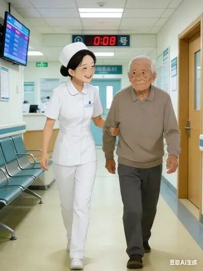 导诊台的护士们注意到廖爷爷步履蹒跚、神情紧张,立刻迎上前去。门诊部副护士长周丽俯身靠近老人耳边,一字一句地耐心询问。她没有因为沟通困难而流露出一丝不耐烦,安抚了老人心中的不安。