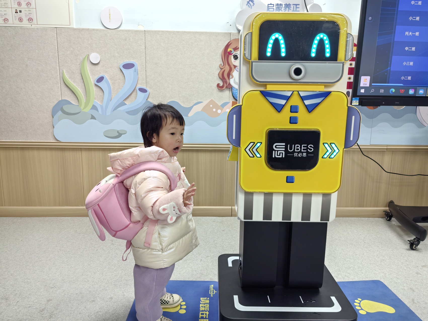 12月30日上午9点,内江彩色鱼七彩汇托幼园,刚进园区的小朋友们主动来到晨检机器人旁,排队接受身体检查。小朋友们熟练地张开嘴巴、举起小手,随着一声声轻微的提示音,体温等健康数据被晨检机器人记录了下来,整个过程不到半分钟。