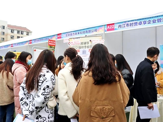 四川在线消息(张啸 宋廷梅 邓顺仙)12月6日,内江师范学院举办2021届毕业生就业双选会活动,共设展位500个,超2000名学生与企业达成初步签约意向。