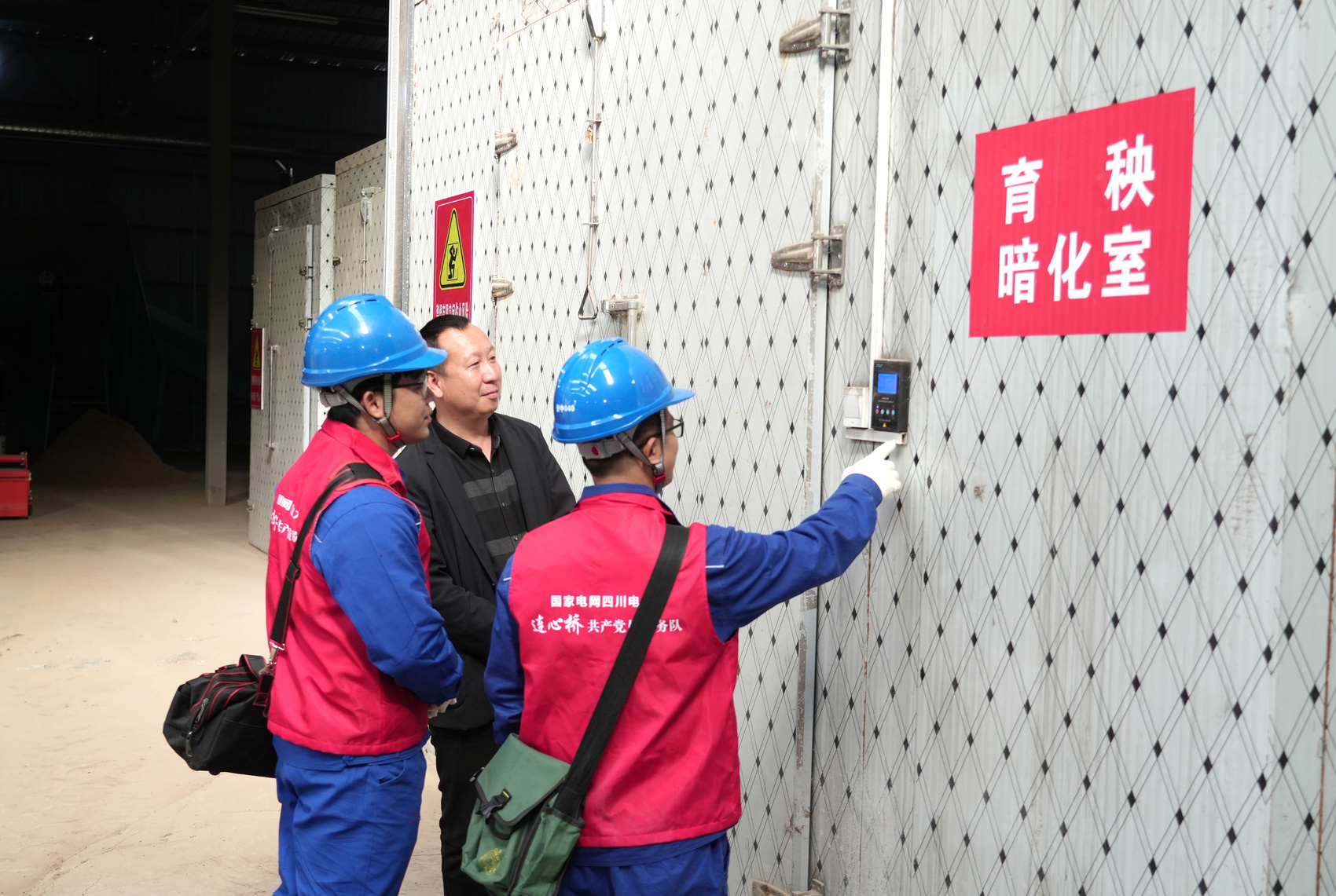 近日,位于内江市资中县的五良融合联村带民发展有限公司育秧基地内,国网资中县供电公司双河供电所员工江越、王东手持检测工具对恒温恒湿育秧设备、配电线路进行全面排查,细致查看接口接触、线路老化等情况。