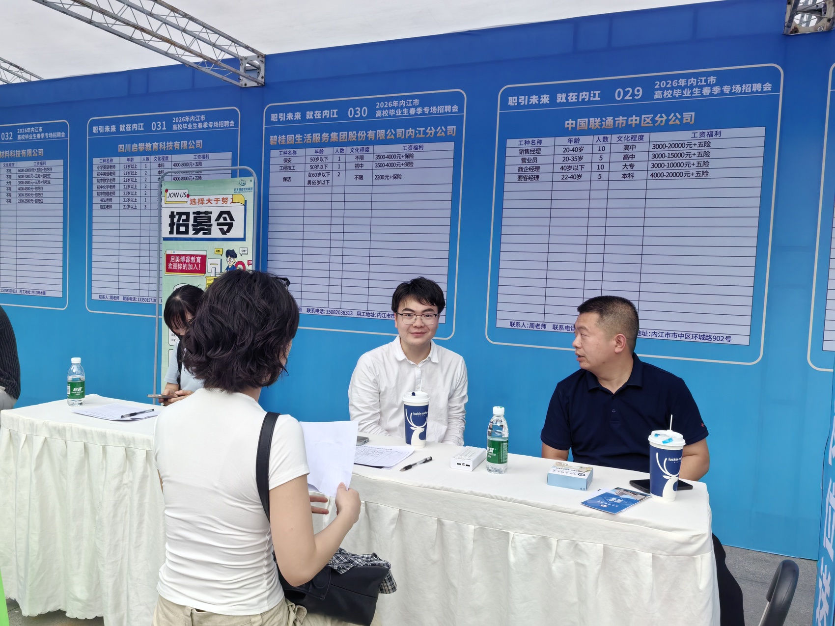 在长川科技(内江)有限公司的招聘展位前,求职者杨婷与企业现场招聘负责人面对面交流,仔细了解岗位要求、薪资待遇等具体信息。“我是内江人,想找一个离家近点的、长期稳定的工作,这家企业薪资待遇还可以,约好了下周去现场面试。”杨婷表示。