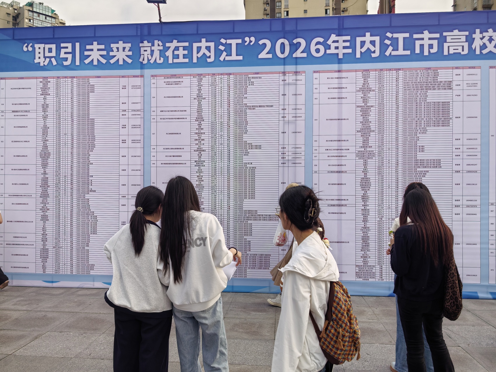 四川在线消息(张啸)4月25日,由内江市人力资源和社会保障局主办的“职引未来就在内江”2026年内江市高校毕业生春季专场招聘会,在内江万达一号门广场举行。活动现场共吸引5000人次入场求职,达成初步就业意向327人次。