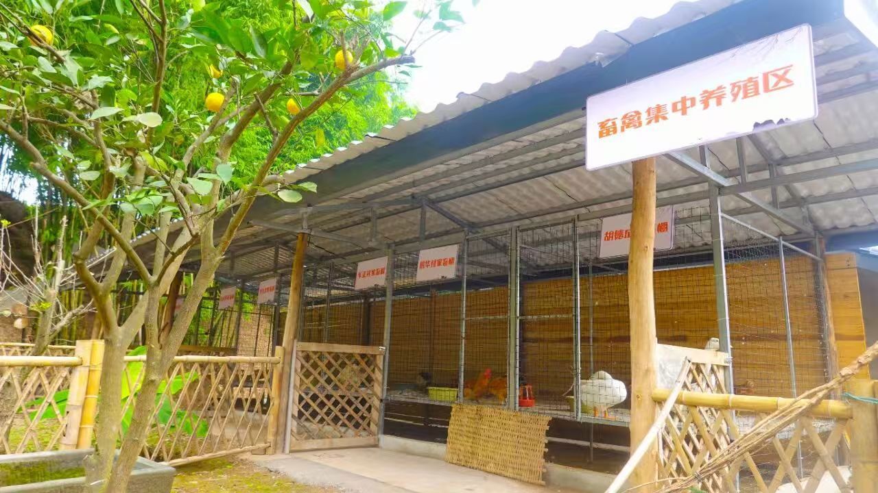 与集中柴棚一路之隔的集中畜棚,6户村民养的鸡鸭鹅则全部住进了“集体宿舍”。78只家畜“各居其室”,棚内铺设了防滑垫,墙角设置了排污沟,连接着旁边的化粪池。“以前我家养了五六只鸡、八九只鸭,散养在院坝里到处屙粪,孙孙放学回家都要绕着走。”村民胡树清说,现在集中养殖后,房前屋后干净多了,偶尔实在有事喂不了牲畜,还能麻烦邻居帮忙喂一顿。集中畜棚干净了村民居住环境的同时,也让村子道路更通畅了。黄长久说:“以前骑摩托车出入,经常遇到鸡鸭到处撵路,一不小心容易摔倒。现在集中养,出行都方便多了。”
