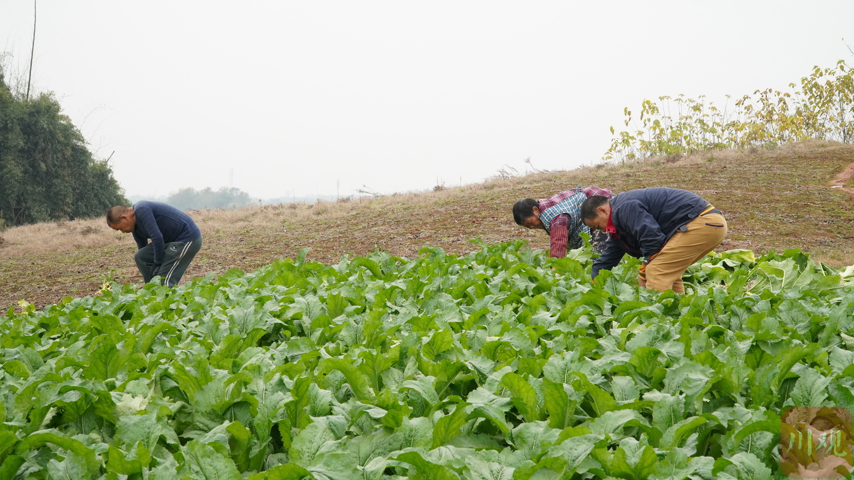 村民在大头菜田里干活。