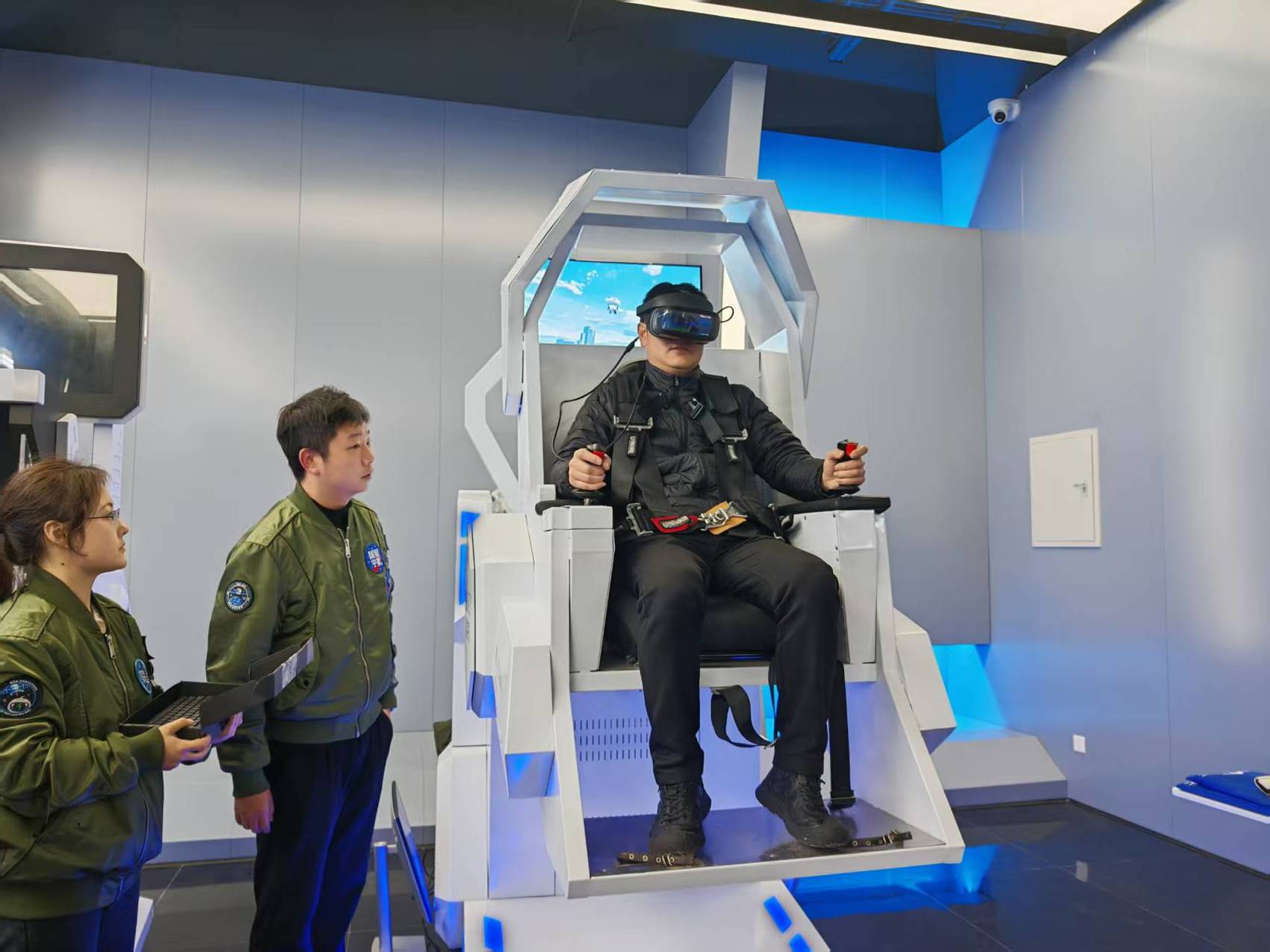 媒体体验国星航空航天科普教育研学基地的星游座舱。 康琴/摄