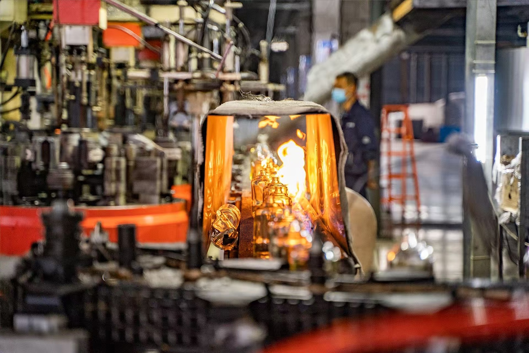 园区另一边,四川观宇玻璃实业有限公司车间,经原料配制、熔制、成型、退火等工序后,每天最多有超20万只酒瓶从这里产出,运往周边城市,配套五粮液、郎酒等知名品牌。