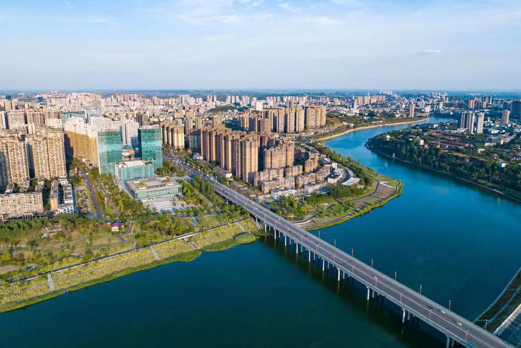 在这条长约15公里的汉安大道上,你不仅能看到内江主城的繁华,更能感受到这座城市的发展脉搏——两侧是繁华的商圈、优质的学校、一流的医院、舒适的小区和美丽的公园,顺着其延伸出的脉络周边,还有不断扩面的园区和飞速发展的产业。