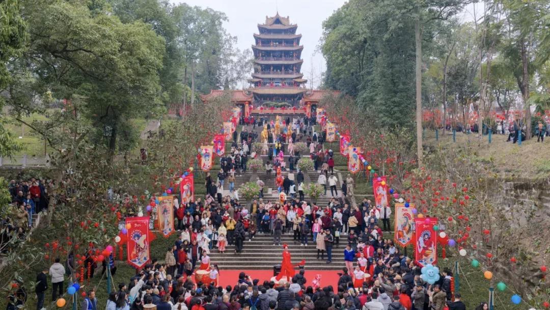 本次庙会创新构建“山下沉浸式互动+山上新式演艺”分层体验布局,联动重龙山、文武庙、青云广场、滨江公园等核心区域,从正月初一到正月初六,“状元贺春”“关帝巡游”“国潮电音”等六大主题演艺与巡游精彩不重样。配合无人机表演、媒婆说亲等特色活动,所到之处,人头攒动、热闹非凡,让千年古城的年味真正“活”起来、“火”起来。