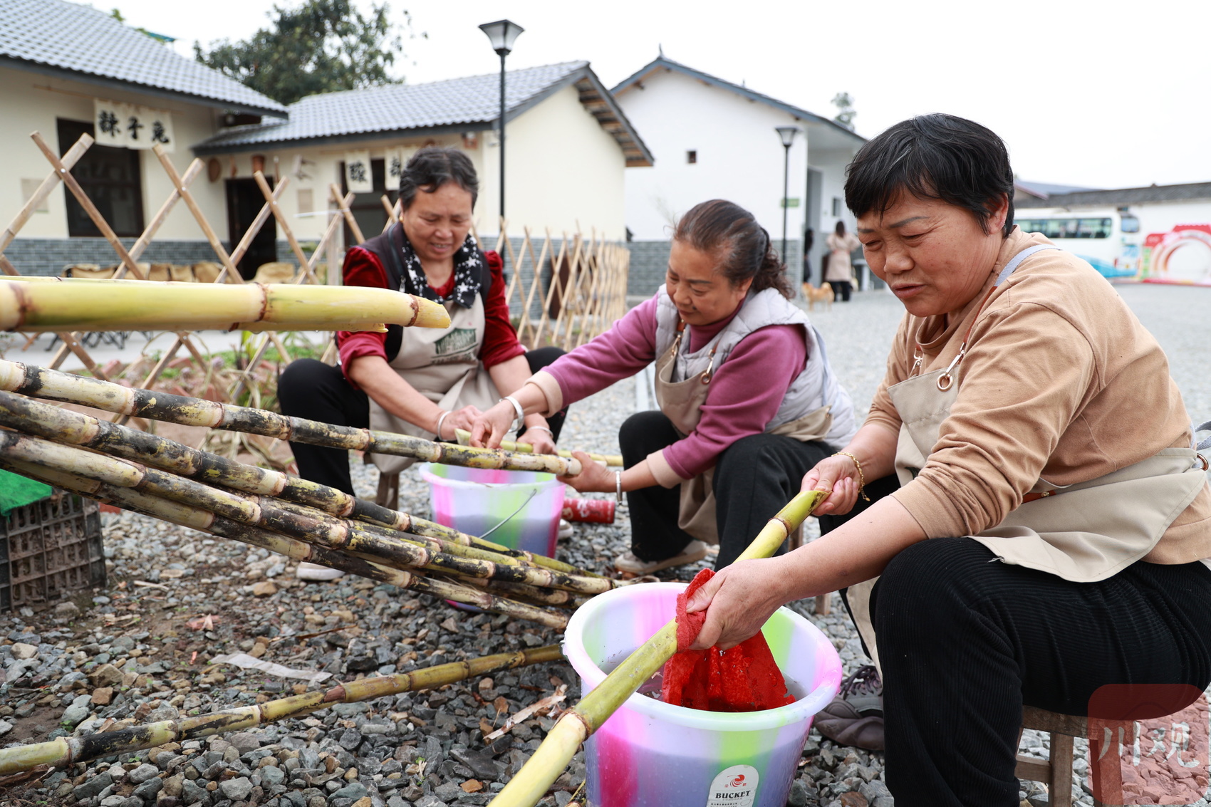 非遗工坊里村民们正在清洗甘蔗(唐广 摄)