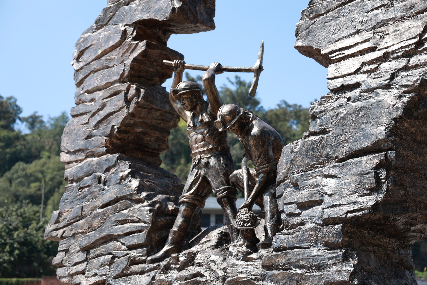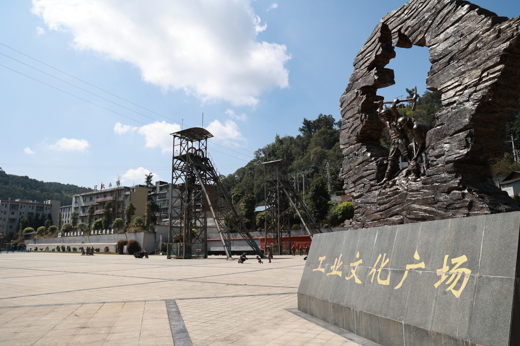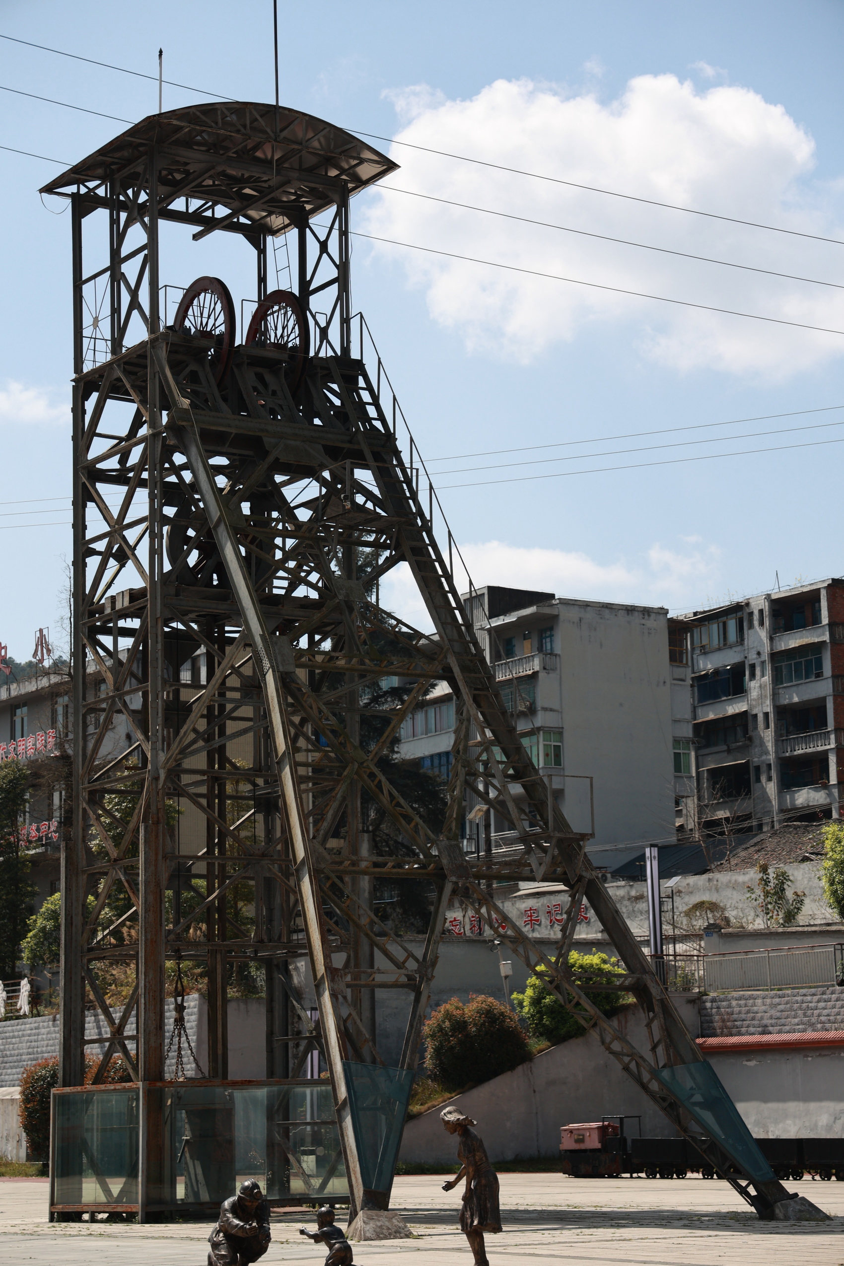 广场正中,也是当年的一二号矿井入口处,矗立着两座高高的索塔。午后的阳光顺着塔尖射来,王德华抬起头来,不自觉把手横在了额头上。