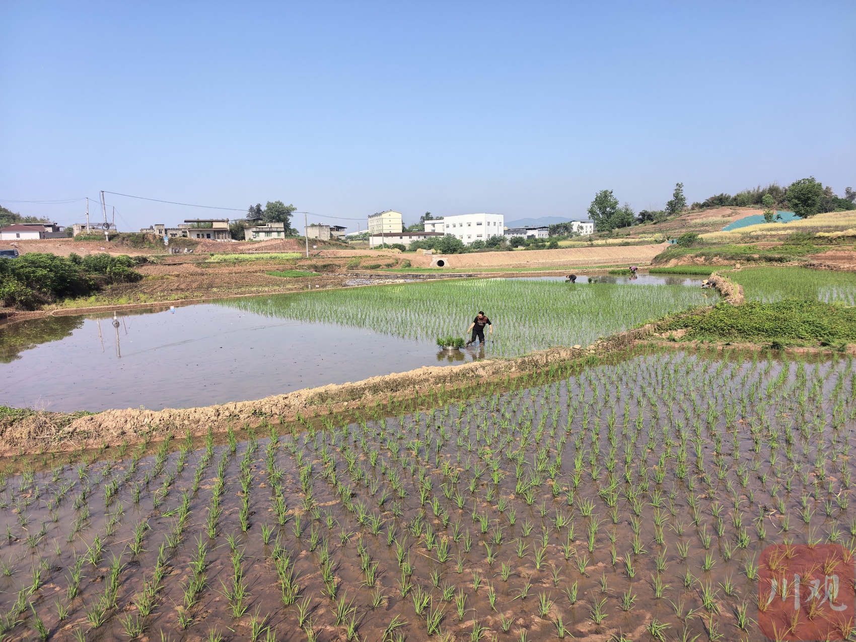 隆昌市圣灯镇大桥村的村民正在插秧